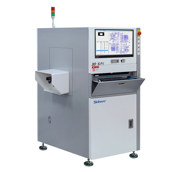 SPI錫膏檢測采用可編程條紋光3D技術;智能控制6光源拍攝系統;2D/3D全覆蓋檢查技術;快速檢測少錫、拉尖、短路、偏移、形狀等不良.錫膏高度檢測范圍0~500um,最小可以檢測50*50um 。